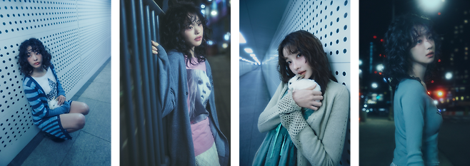 첫 번째로 공개된 콘셉트 포토에서는 멤버들이 상처 난 얼굴로 길을 잃은 채 방황을 하고 있는데요. 푸르스름한 색감, 컬을 강조한 헤어 스타일링, 니트 소재의 착장을 통해 부드럽고 조금은 친근해 보이는 인상을 연출합니다. 이미지를 블러 처리하며 쓸쓸하면서도 몽환적인 분위기를 연출하는데, 사진 속 빛들이 하나같이 뭉개져 있는 것이 특징적입니다. 아날로그적인 질감과 색감이 있어서, 왠지 모르게 필름 카메라로 찍은 것 같은 느낌도 드네요.