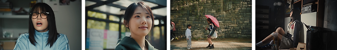 히나는 버스 정류장에서 누군가에게 손을 흔들지만, 정작 버스에는 오르지 못한 채 홀로 눈물을 훔치는데요. 실용음악을 전공하고 싶었으나, 현실적 한계로 꿈을 접어야 했다고 밝힌 바 있습니다. 마젠타 역시 미대 입시를 준비했지만, 낙방하고 재수 생활을 한 적이 있었죠. 검은 화구통🎨을 들고 다니는 모습으로 자신의 과거를 재현하고 있습니다. 그리고 쵸단은 어두운 연습실 한 켠에 주저앉아 드러머🥁라는 꿈을 이어가야 할지, 혹은 말아야 할지를 고민하고 있는 모습이네요. 이번 뮤직 비디오가 멤버들의 과거 이야기를 다루는 만큼, 4:3 비율로 뮤직 비디오를 제작해 보는 사람으로 하여금 각자만의 기억들을 떠올리게 하는 역할을 수행합니다.