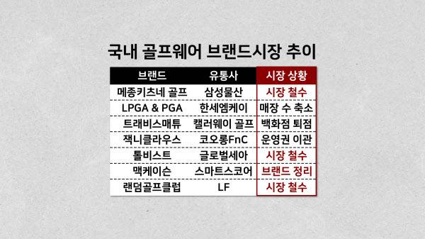 골프 산업 전반에 실적이 떨어지고 있습니다. 골프웨어 시장도 대표적인데요. 골프에 입문했던 MZ세대가 점차 흥미를 잃자 골프복 브랜드들도 잇따라 철수하는 모습입니다. 한세엠케이의 주력 골프 사업 부문인 LPGA와 PGA는 매장 수를 기존 28개에서 20개로 축소했습니다. 삼성물산 패션부문의 메종키츠네 골프와 LF의 랜덤골프클럽은 론칭 1년 만에 시장에서 철수했습니다. 2022년 4조2500억원에 달했던 국내 골프웨어 시장 규모는 2023년 3조7500억원, 2024년 3조4500억원으로 큰 폭으로 하락했습니다.