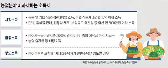 사업소득세는 매출액에서 원료 매입가격, 판매 부대비용 등 필요경비를 뺀 금액에 부과하는 세금이다. 농업소득은 사업소득으로 분류되지만 대부분의 농민은 이에 대한 소득세를 내지 않는다. ‘곡물 및 기타 식량작물재배업’은 전액 비과세며, 이 외 작물재배업은 수입금액 10억원 초과분에 과세하기 때문이다.