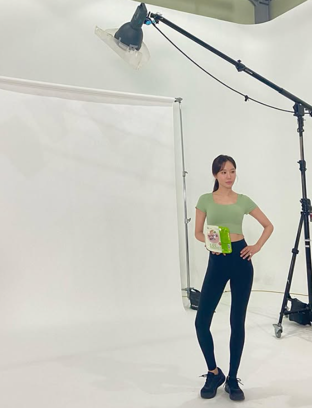 김아중 님의 상의는 탄탄한 라인을 강조해 주는 핏된 크롭티였어요. 컬러는 싱그러운 그린 톤으로, 보기만 해도 활기 넘치는 분위기를 전해줬죠. 상의의 기장이 짧아 허리 라인이 드러났는데, 그 덕분에 전체적인 비율이 훨씬 좋아 보였어요.
