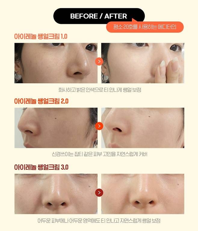 아이레놀 쌩얼 크림은 피부 톤에 맞춰