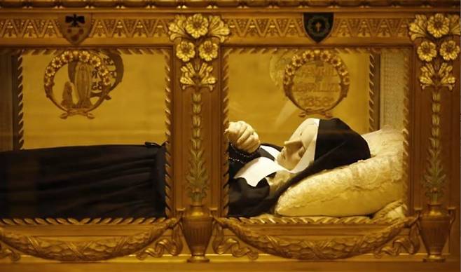 하지만 30년이 흐르고, 이제 그만 관을 땅속에 매장하려던 성당의 사람들은 충격적인 광경을 목격하게 되죠. 놀랍게도 베르나데트 수녀의 시신이 전혀 부패하지 않았고, 바로 어제 사망한 사람처럼 생기가 있게 그 모습을 드러낸 것입니다.