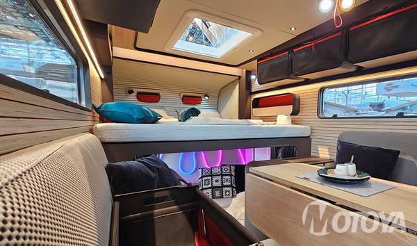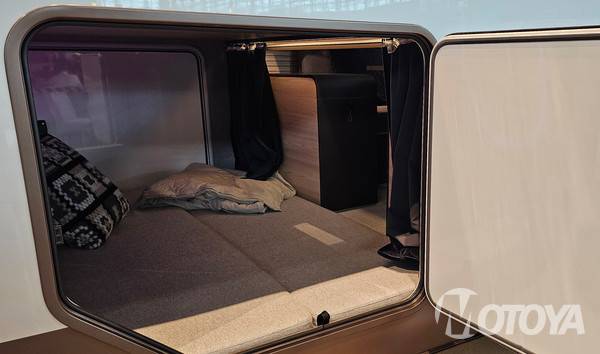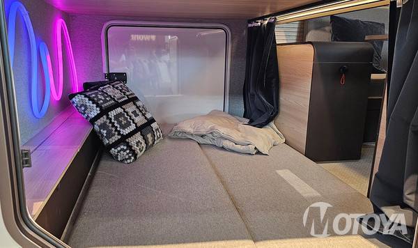 후방으로 위치한 수납함도 완전히 다른 형태다. 수납함 바닥을 침대의 매트리스처럼 사용할 수 있어, 내부에서 취침을 취할 수 있도록 했다. 바닥 면을 접어 앞 쪽으로 세우면 자연스럽게 짐을 보관할 수 있는 대형 수납공간으로 사용할 수 있는 구조다.