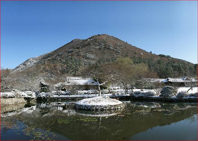 운림산방 앞에는 오각형 연못이 자리하고 있고, 연못 중앙의 작은 섬에는 배롱나무 한 그루가 서 있습니다. 겨울에는 꽃 대신 고요한 수면과 나뭇가지의 실루엣이 남아, 수묵화 같은 장면을 만들어냅니다. 이 계절의 운림산방은 사진보다 눈에 오래 남는 풍경을 선사합니다.