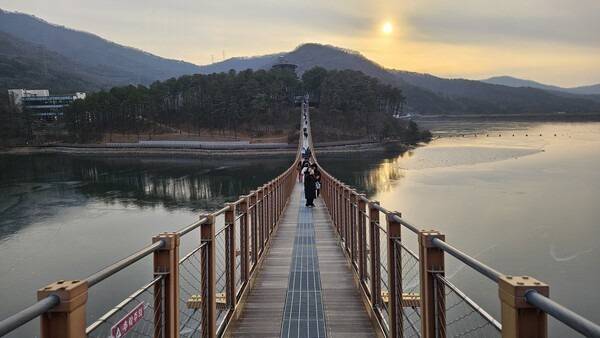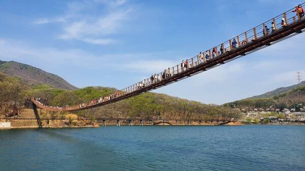 파주 광탄면 기산리에는 출렁다리와 데크 둘레길 풍경이 멋진 마장호수가 있습니다.