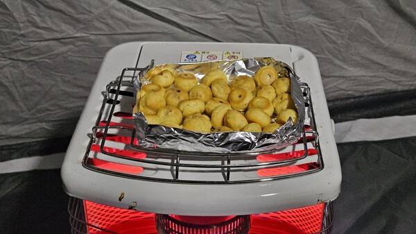 동계 캠핑의 재미 중 하나는 난로 위에 이것저것 구워 먹는 낭만입니다. 고구마, 감자, 피자, 과자 등 뭐든지 올려놓고 구워 먹을 수 있어 좋습니다. 이번 캠핑에는 고구마와 홈*볼을 구워 먹어 보았습니다. 밖에서 난로에 구워먹는 음식은 집에서 먹는 것보다 항상 맛있게 느껴집니다.
