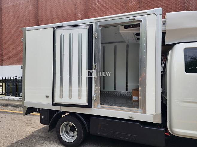봉고3 EV 냉동탑차는 차량에 장착한 고전압배터리를 활용해 냉동기를 가동한다. 또, 보조배터리를 추가해 1,000㎏의 적재중량을 제공한다.