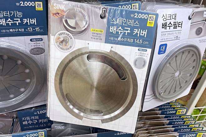 다이소에 가면 많은 분들이 추천하시는 꿀템들이 꽤 있는데요. 그 중에서도 최근에 정말 잘 샀다 싶은 제품은 스테인리스 배수구 커버예요. 가격은 2,000원입니다.