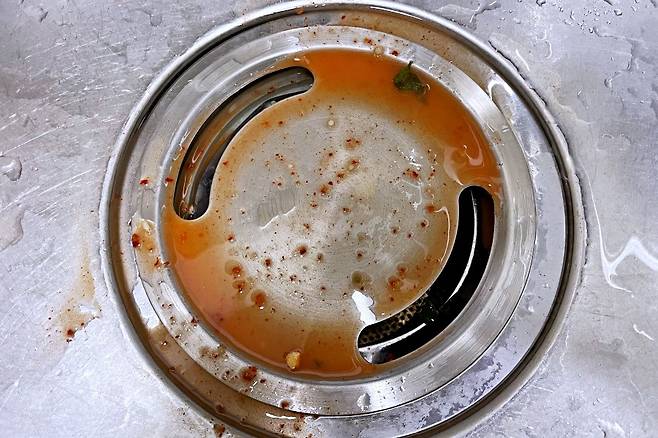 물로 헹궈만 주면 바로 씻겨 나가서 깨끗함을 유지하고요. 이염도 되지 않으니 참 좋더라고요. 배수구 커버가 플라스틱 재질이라면 다이소 스테인리스 배수구 커버 내돈내산 강추합니다!