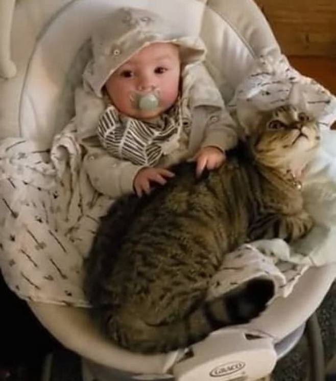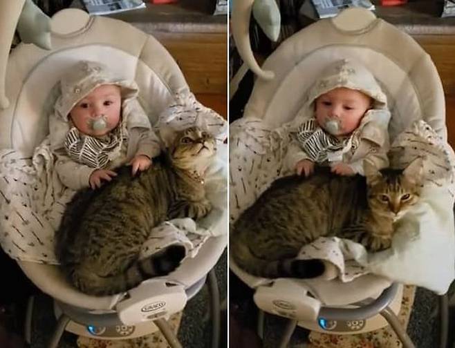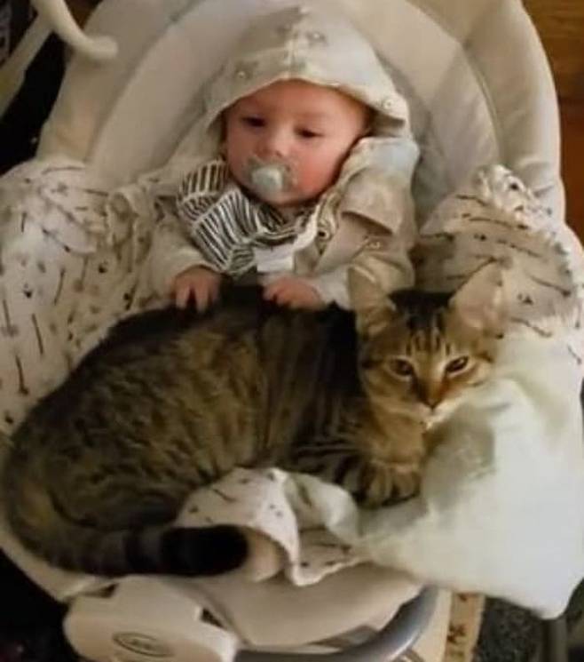 어느 누가 고양이는 자기 밖에 모른다고 했나요. 여기 어떻게 해서든 아기랑 같이 있고 싶어하는 고양이가 있어 보는 이들에게 잔잔한 감동을 주고 있습니다.