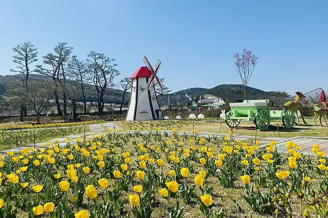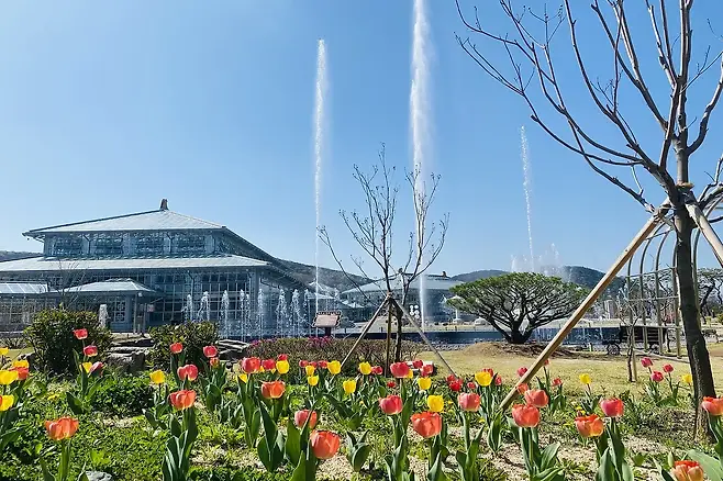 농업연구체험시설에서는 계절별로 체리·블루베리 따기가 진행되며, 압화(꽃누르미) 체험 등 상시 프로그램도 인기다. 야외 음악분수가 설치된 정원 구역은 봄바람을 타고 흐르는 물소리와 꽃향기가 어우러져, 한낮이든 저녁이든 낭만적인 분위기를 자아낸다.