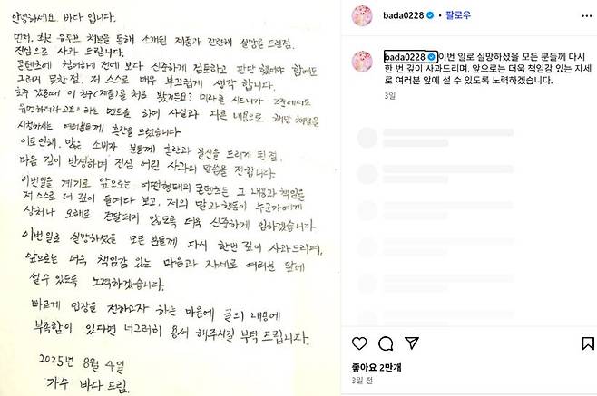 유명 연예인이 급히 사과문을 쓴 이유