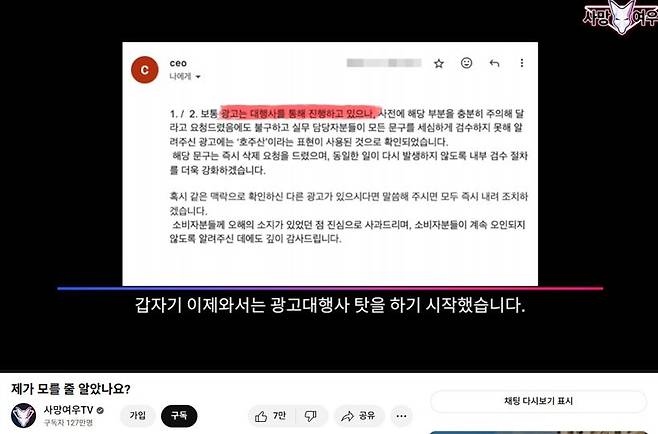 미라클 시드니의 보도자료에 거론된 백화점 3사는 사망여우TV의 콘텐츠로 인해 논란이 불거지자 재빨리 조치를 취했다. 제품을 철수시키고 저마다의 입장을 내놓은 것이다. 어떤 곳은 자신들이 아니라 벤더사가 들여온 제품이었다고, 또 어떤 곳은 본사 화장품 매장에서 판매되는 제품이 아니었다고 밝혔다. 하지만 이러한 변명이 누구나 납득할 수 있는 성격의 것은 아닌 것으로 보이는 게 사실이다. 설사 내부 사정이 어떠하든 소비자 입장에서는 백화점 브랜드를 신뢰하고 제품의 구매를 결정하는 것이니, 백화점의 안이한 조치가 소비자 피해를 불러올 수 있었음은 부정할 수 없기 때문이다.