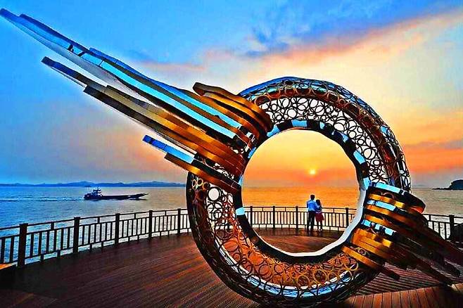 낙조 전망대에는 ‘석양을 가슴에 담다’라는 이름의 조형물이 설치되어 있어, 이 조형물 사이로 해가 지는 순간을 포착하면 멋진 사진을 남길 수 있습니다.