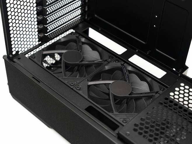 쿨링 팬 지원 : 전면: 140mm x 2, 상단: 120mm x 3 또는 140mm x 2, 후면: 1개 (120mm)
