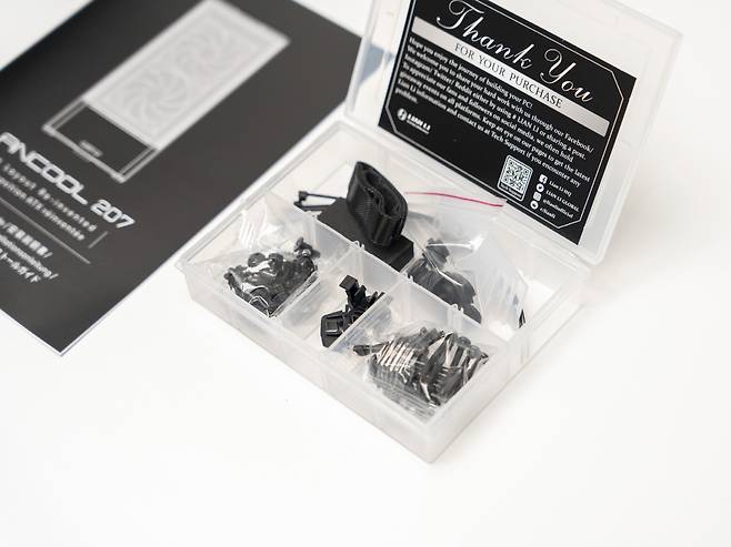 구성품으로는 LANCOOL 207 본체, 각종 나사 및 케이블 타이, 설명서 등이 포함되어 조립 시 필요한 모든 도구를 제공합니다.