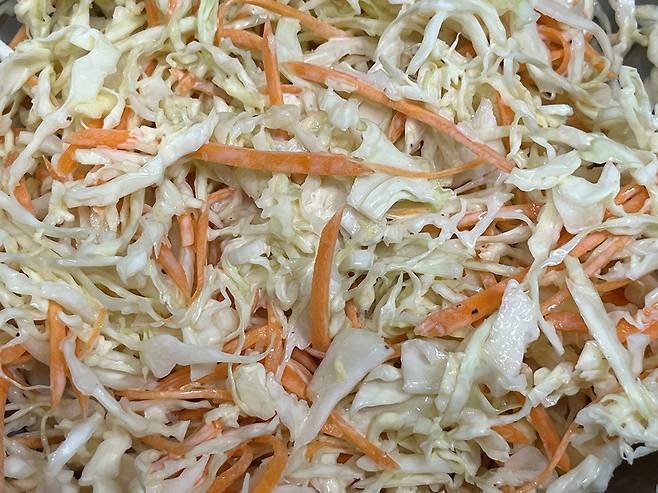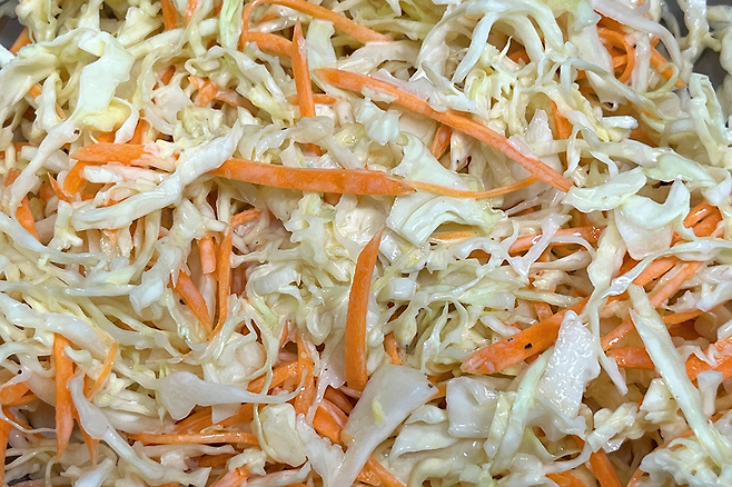이렇게 만든 양배추 샐러드는 2~3일 냉장보관 해 두고 먹어도 맛있습니다. 만드는 방법은 간단한데 맛은 좋은 양배추 샐러드입니다. 생 양배추인데도 전혀 풋내가 나지 않고, 오히려 부드럽고 담백한 식감이 특징입니다.