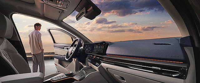 실내는 파노라믹 커브드 디스플레이와 차세대 인포테인먼트 시스템(ccNC)이 적용되어 하이테크한 감각을 더했습니다. 또한, 수평형 레이아웃과 은은한 무드 조명이 결합되어 고급스럽고 세련된 분위기를 완성했습니다.