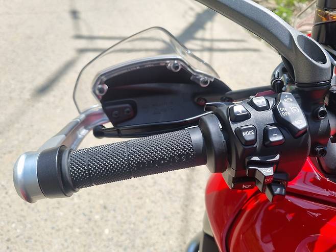 심지어 5단, 6단에서의 가속 능력은 무시무시할 정도였다. '1158cc 4기통 170마력의 힘이 이런 거구나'하는 감탄이 절로 나왔다. 게다가 퀵시프트 기능이 있어서 클러치 레버를 잡던 왼손이 할 일이 대폭 줄었다. R차에서나 가능할 거라고 생각했던 가속의 기쁨이 향긋한 봄기운과 함께 오롯이 몸속으로 스며들었다. 그렇다고 주행풍이 함께 스며드는 건 아니었다. 윈드실드가 20mm 넓어지고 40mm 높아졌기 때문에 바람을 효과적으로 차단했다. 윈드실드도 가운데 레버를 엄지와 검지로 잡고 들어올리거나 내려주면 된다. 너무나 직관적이어서 굳이 전동으로 안 한 이유를 알 것 같았다.