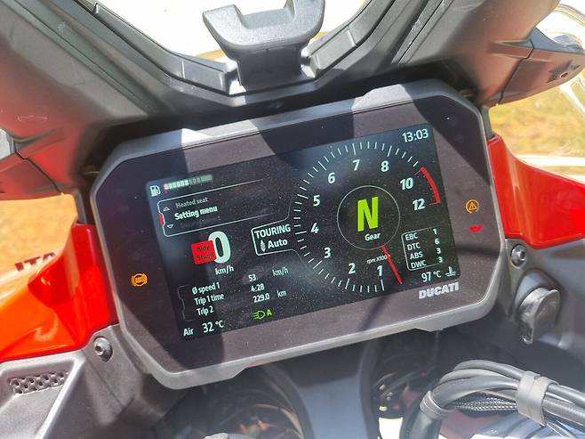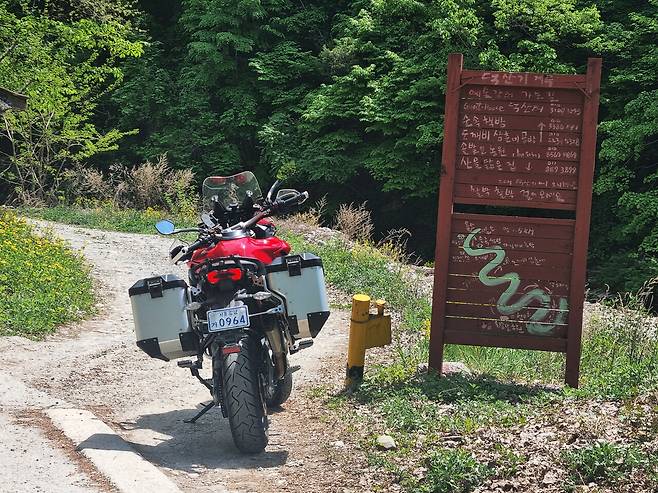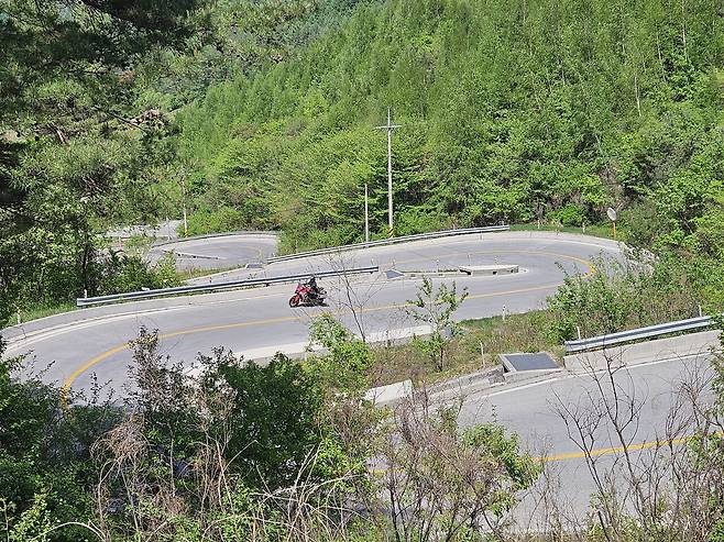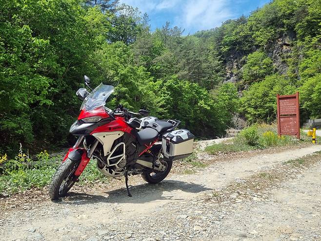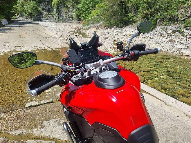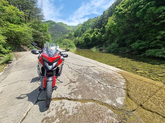 국도엔 제법 차량이 많았다. 이때 최고의 성능을 발휘하는 게 어댑티브 레이더 크루즈 컨트롤 (Adaptive Radar Cruise Control). 적당한 속도에 맞춰 세팅을 해 놓으면 앞 차와 안정적인 거리를 유지하면서 항속을 하는 기능이다. 덕분에 아름다운 5월의 신록을 두 눈에 가득 담을 수 있는 행복한 시간이었다. 라이딩 내내 스로틀을 쥐어짜고 있을 필요가 없기 때문에 장거리 연속 투어 이후에 찾아오는 '오른손 저림 현상'이라는 불청객도 피할 수 있었다.