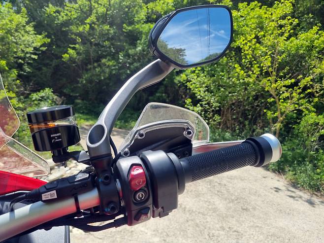 라디에이터의 뜨거운 기운은 라이더를 향하지 않고 흘러나가도록 설계된 덕분에 다리가 뜨거울 일이 없었다. 그 아래 에어덕트는 신선한 공기를 보내주기도 하고, 겨울철에는 공기흐름을 차단해 추위를 막을 수도 있게 했다는 게 두카티의 설명이다.