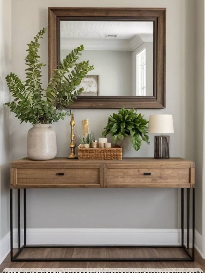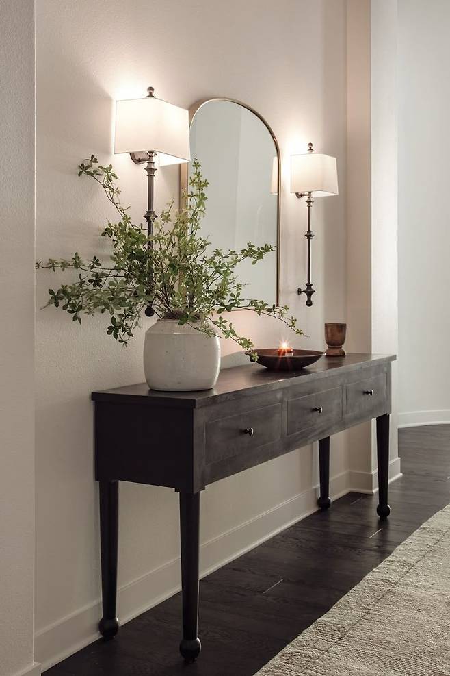 콘솔 하나만 두었을 뿐인데 현관이 ‘호텔 느낌’으로 바뀐다는 분들, 의외로 많습니다. 얇고 세련된 콘솔은 좁은 공간에도 잘 어울리고, 거기에 조화, 액자, 트레이 등 소품을 더하면 고급스러운 연출이 가능하죠. 연예인 집이나 셀럽 하우스에서 자주 보이는 이유도 바로 이 때문입니다. 비싼 인테리어 공사 없이도 분위기를 확 바꾸는, 작지만 강력한 변화 포인트죠.
