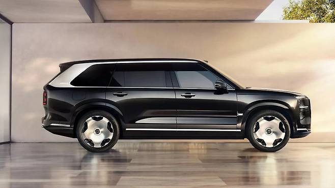디자인은 럭셔리에 방점을 뒀다. 전면 그릴은 지커 009 미니밴과 유사하지만 헤드라이트는 밤하늘의 별을 형상화해 롤스로이스 컬리넌을 연상시킨다. 22인치 휠은 마이바흐를 떠올릴 정도로 고급스럽다. 특히 D필러 디자인이 독특해 측면에서 봤을 때 일반 SUV와는 확연히 다른 프리미엄감을 연출한다.