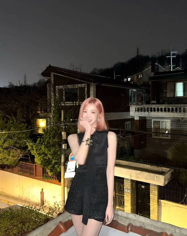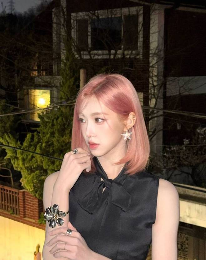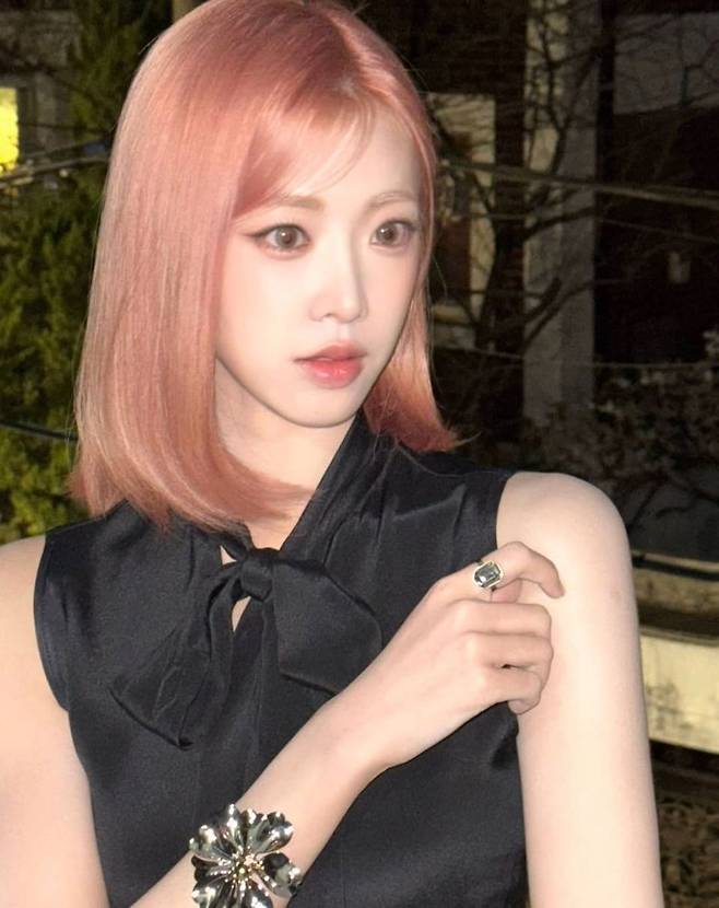 특히 눈길을 끄는 건 니엔의 헤어 컬러다. 은은한 핑크빛이 감도는 단발머리는 전체적인 블랙 착장과 극적인 색 대비를 이루며 독보적인 존재감을 뽐냈다. 이 조합은 Y2K 레트로 감성과 모던 시크가 조화된 스타일링으로, 니엔 특유의 몽환적이고 도회적인 매력을 극대화한다.