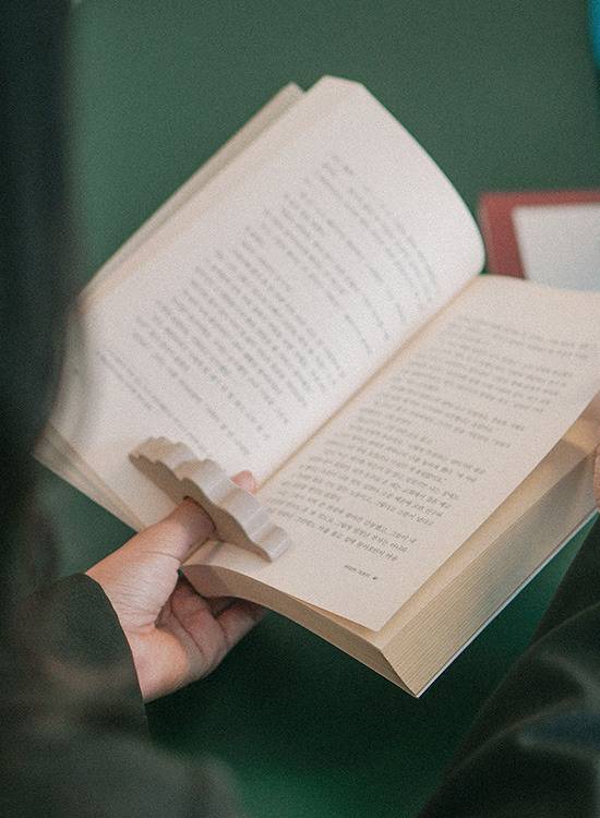 책을 읽다 마음에 드는 문장을 필사하는 사람이라면, 책장이 넘어가지 않도록 고정하는 물품이 필수적이다. 그럴 때 책에서 두 손을 자유롭게 해주는 제품이 바로 문진과 북 스토퍼이다. 문진이 책 위에 올려두는 무거운 물품이라면, 북 스토퍼는 책장이 넘어가지 않도록 직접 잡아주는 집게다. 북 스토퍼는 문진보다 더욱 안정적으로 책장을 고정해 준다.