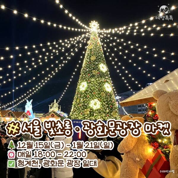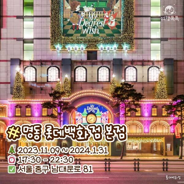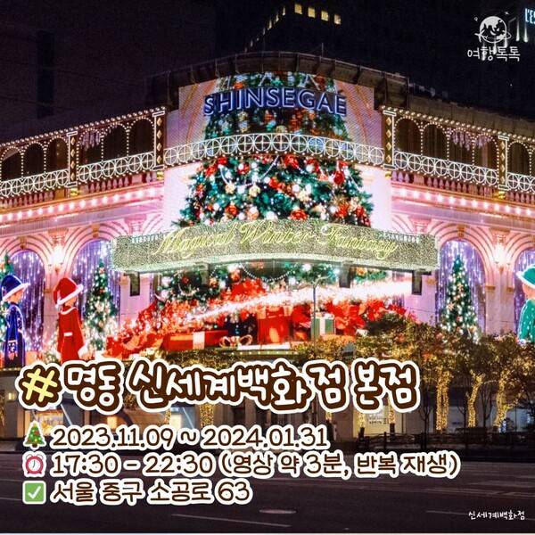 오늘 여행톡톡에서는 미디어파사드와 대형 크리스마스 트리를 만날 수 있는 '2023 크리스마스 스팟'을 소개합니다. 황홀한 연말연시를 만들어 줄 연말 불빛 명소를 함께 알아볼까요?