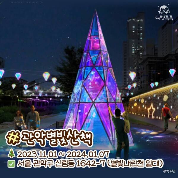 감성을 자극하는 별빛공간을 산책할 수 있는 관악 별빛산책은 관악구 별빛내린천 일대에서 2024년 1월 7일까지 만나보실 수 있습니다.