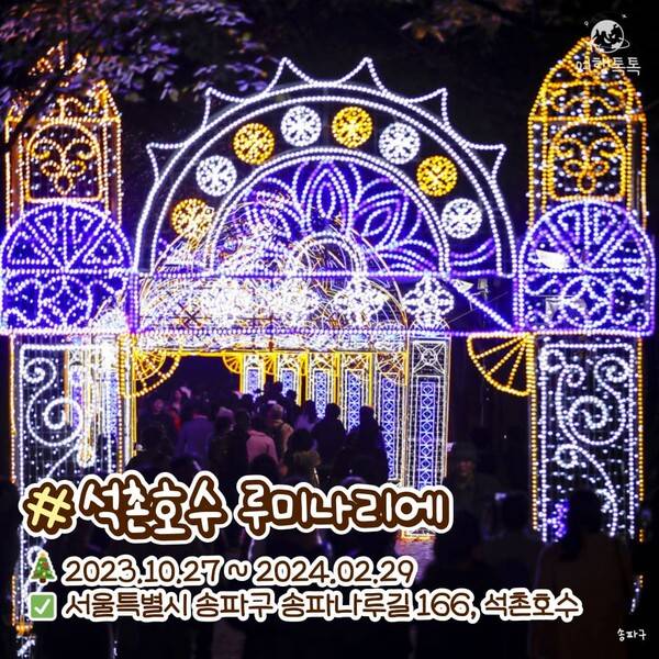 송파구 석촌호수 일대에서는 ‘빛으로 이어지는 마음과 마음’이라는 주제로 ‘호수의 가을과 겨울 그리고 루미나리'에 축제가 개최됩니다.