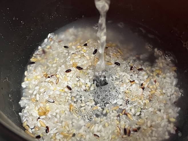 새 밥을 지을 때 식은 밥을 넣어서 같이 밥을 하는 방법인데요. 평소에 밥을 하는 것처럼 쌀을 씻어서 밥솥에 안치세요.