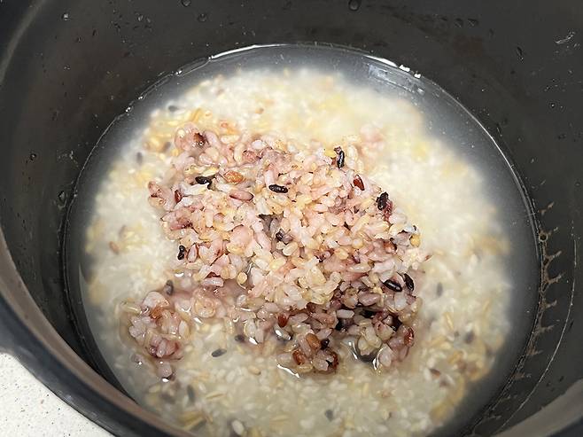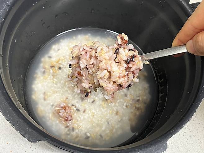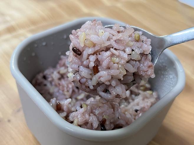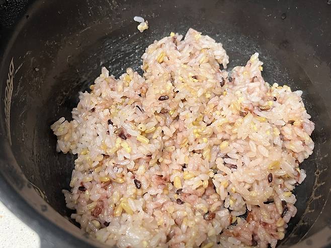 식은 밥을 새 밥 할 때 섞어서 했더니, 감쪽같이 새 밥처럼 되었습니다. 이렇게 먹으면 식은 밥도 새 밥처럼 맛있게 드실 수 있습니다.