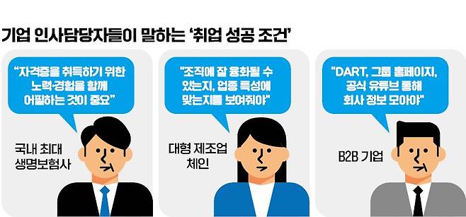 인사 담당자들은 취업난 속 구직 팁으로 “모든 과정에서 정성을 보여주라”고 귀띔했다. C사 관계자는 “일부 지원자 중에서는 기존에 작성한 이력서를 여러 기업에 동일하게 내 기업명을 잘못 쓰거나 사업영역과 맞지 않는 내용을 쓰는 경우가 더러 있다”며 “이력서는 구직자의 첫인상인 만큼 성실히 작성해야 한다”고 조언했다. 특히 기업 간 거래(B2B) 기업처럼 일반인에게 친숙하지 않은 기업을 지원하는 경우 “금감원 전자공시(DART), 공식 유튜브 등 공개된 정보를 최대한 활용하라”고 말했다.