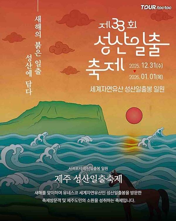 제주 성산일출축제는 12월 31일부터 1월 1일까지 세계자연유산 성산일출봉 일원에서 열리는 대표 해맞이축제입니다.