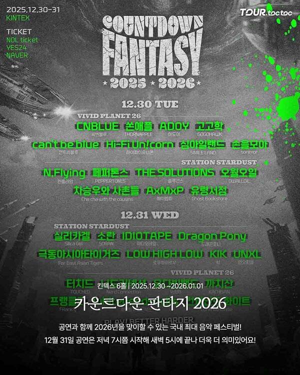 실내에서 음악과 함께 새해를 맞이하고 싶다면 일산 킨텍스에서 열리는 '카운트다운 판타지 2026' 페스티벌도 추천할 만합니다.
