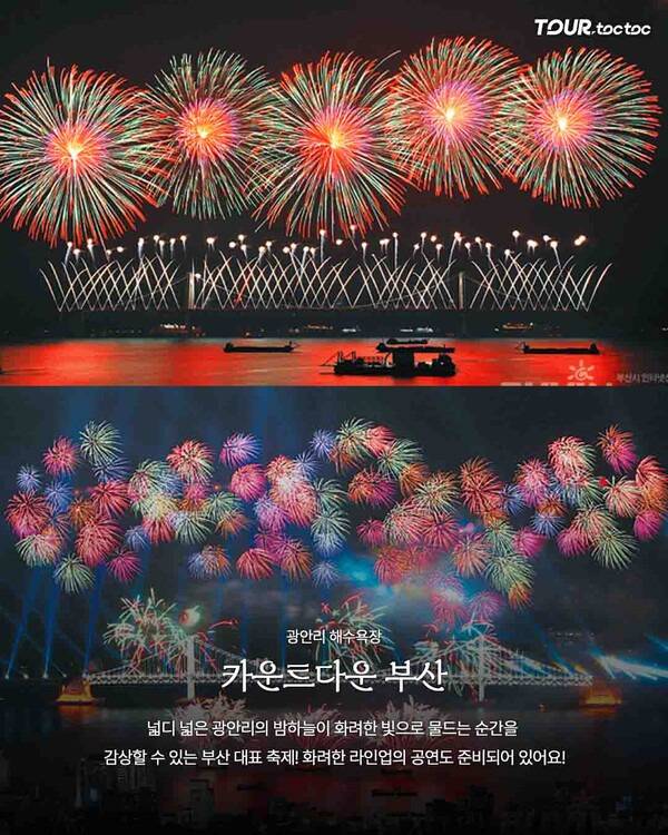 후기에서는 바다 냄새와 함께 터지는 불꽃이 잊히지 않는다는 평이 많을 만큼 바다 배경의 카운트다운 보는 곳으로 인기가 높은 전국축제입니다.