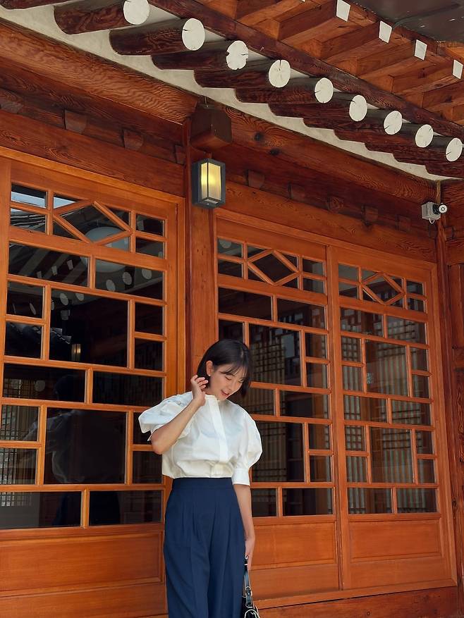 단정하지만 단단한 조합이 배우다운 균형감을 드러내는 순간이에요.