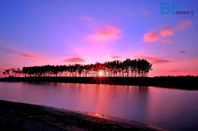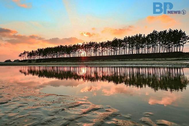 특히 해변 남쪽의 솔숲 방파제는 밀물 때 바닷물이 안쪽으로 차오르면서 마치 섬처럼 떠오르는 장관을 연출한다.