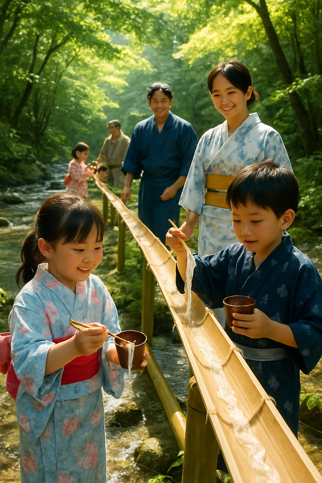 일본의 여름은 무더위와 습도, 밤낮 할 것 없이 열기가 이어집니다. 그 속에서 차가운 흐르는 물과 함께 즐기는 나가시소멘은 자연의 시원함과 놀이 같은 경험으로 스트레스를 날려줍니다. 대나무의 청량한 향, 차가운 물, 자연 속에서의 어울림은 단순히 식사가 아닌, 한여름 일본의 소중한 ‘추억 만들기’가 됩니다.