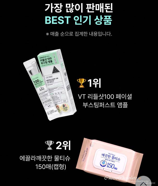 2위는 에끌라 깨끗한 물티슈라고 하고요.