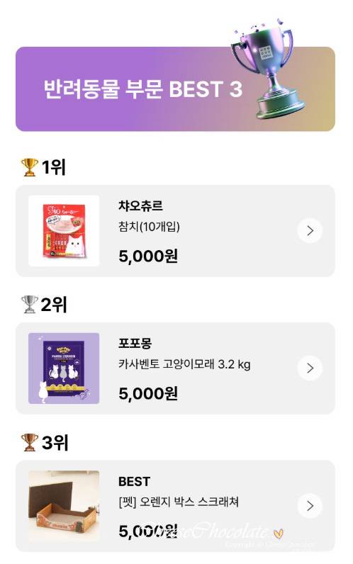 반려동물 1위는 츄르! 그 뒤는 모래와 박스네요.