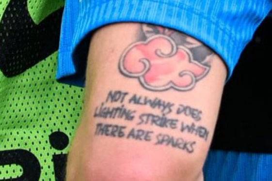 -문신의 철자는 "Not always does lighting strike when there are sparks"