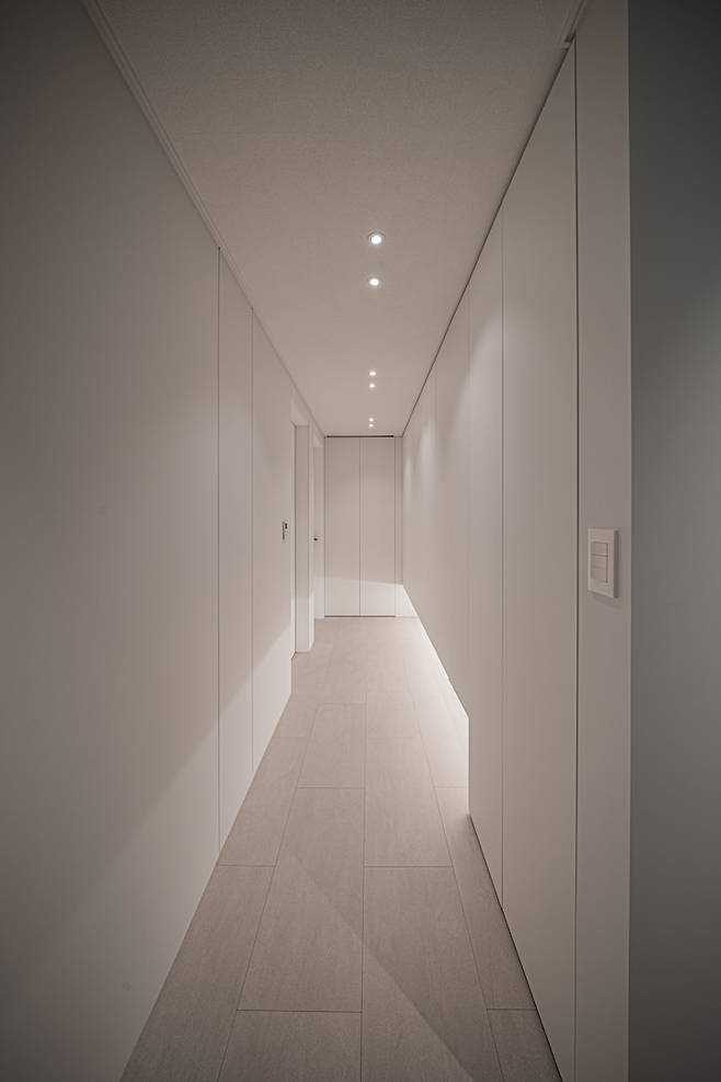 사실 집 전체 조명 계획을 업체 사장님께서 알아서 정해주셨는데 너무 만족스럽습니다. 저희는 그저 공용부에 동그란 다운라이트가 싫다고만 말씀드렸거든요. 잘 모를 때는 전문가 말대로 하는 것도 나쁘지 않은 것 같습니다.