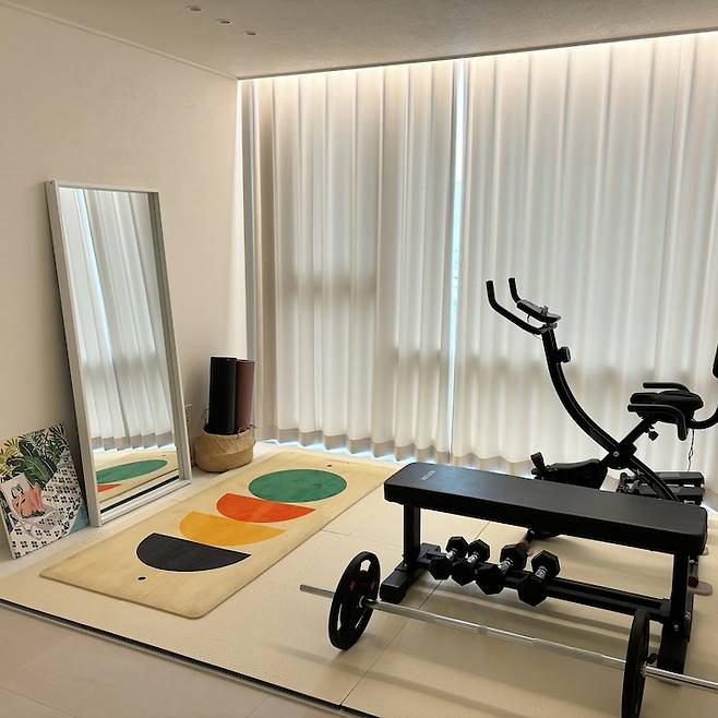 홈짐 꾸미는데 매트에 돈이 제일 많이 들더라고요. ㅠㅠ 그래도 마루 상하지 않게 하려면 꼭 바닥 보강해 주시는 거 잊지 마세요. 아직 방의 절반밖에 못 깔았는데, 점차 늘려갈 예정입니다! 이제 더 이상 퇴근하고 헬스장 가려고 다시 나가지 않아도 돼서 너무 좋아요:)