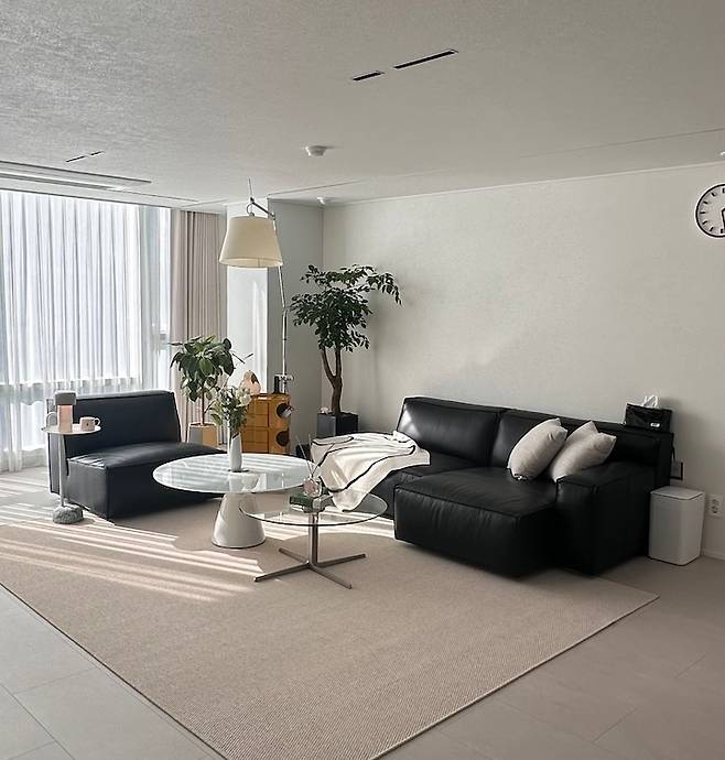 요즘은 거실에 소파 배치를 이렇게 바꿔서 생활 중이에요:) 저 혼자 지내는 시간이 많아 아늑한 느낌을 주고 싶어서 바꿔봤어요! 햇살 좋은 주말 낮에 남편이랑 같이 소파에 앉아 커피 마시며 이야기 나누는 시간이 제일 행복해요:)