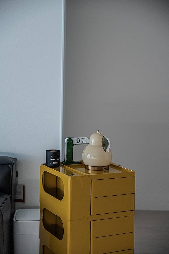 저희 거실 효자템 보비 트롤리에요. 리모컨, 충전선들, 읽다 만 책들, 물티슈 등등 나와있으면 지저분해 보이는 것들을 다 이 안에 넣고 사용하고 있어요. 덕분에 거실을 깔끔하게 유지하고 있답니다.