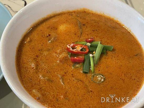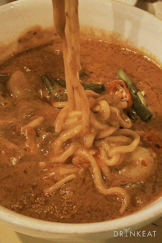 시그니처 메뉴인 촙촙면의 자태. 매콤, 고소해 쉽게 중독되는 맛이다. 카레? 마라? 그 어디에선가 느껴봤던, 좋아하는 그 향이 풀풀 코를 찌른다. 새우와 야채 등과 함께 떠먹는 꾸덕한 국물은 분명 내 옆구리 살이 될 걸 알면서도 자꾸 퍼먹게 된다. 오동통하고 부드러운 면발은 소스라 불러도 무방한 꾸덕한 국물과 하나가 돼 기분 좋은 한입이 된다.